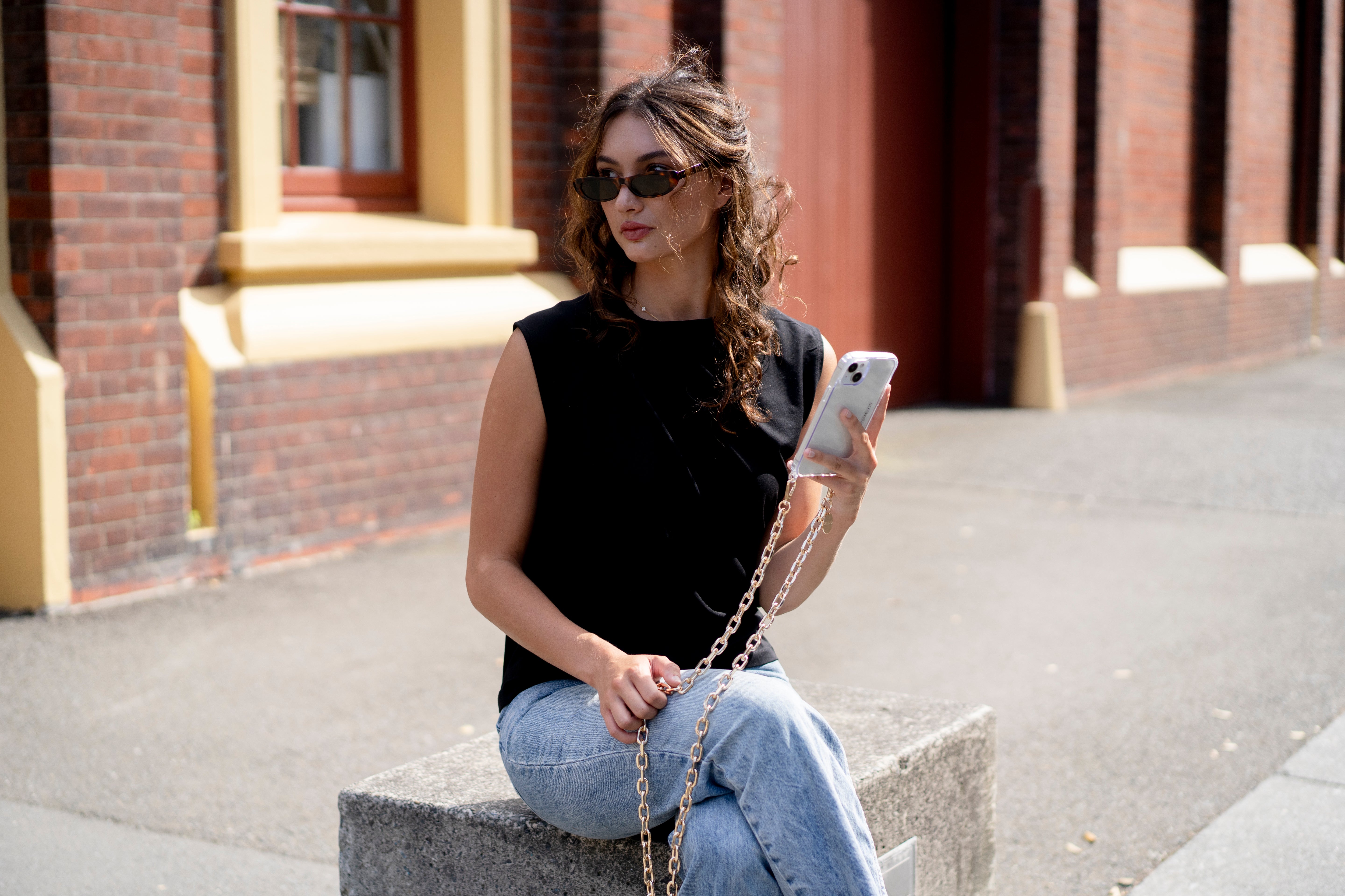 This stainless steel, lightweight yet sturdy phone chain provides a simple and elegant 120cm cross body look, complete with stainless steel rotating carabiners and rings that attach to our universal adapters.